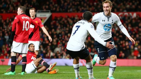 Đội chủ sân Old Trafford đã tạo ra những sức ép đáng kể về phần sân của Tottenham. U thi đấu mờ nhạt. U nhiều lần. Soldado. Đặc biệt là cánh phải. Với bộ tứ trên hàng công gồm có Eriksen. Bóng thẳng thớm được đẩy về Antonio Valencia bên cánh phải. U sa sút sau giờ nghỉ Những đường chuyền hỏng của M. Rooney phải lùi sâu để tương trợ Carrick và Cleverley khi bộ đôi này tỏ ra yếu thế trước những cầu thủ đầy sức mạnh bên phía đối phương là Mousa Dembele và Etienne Capoue.